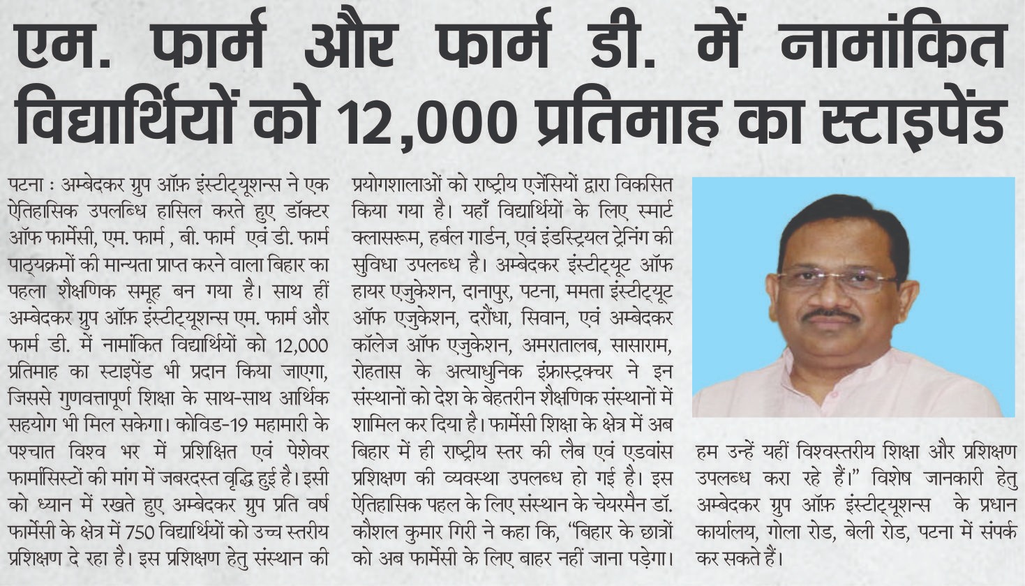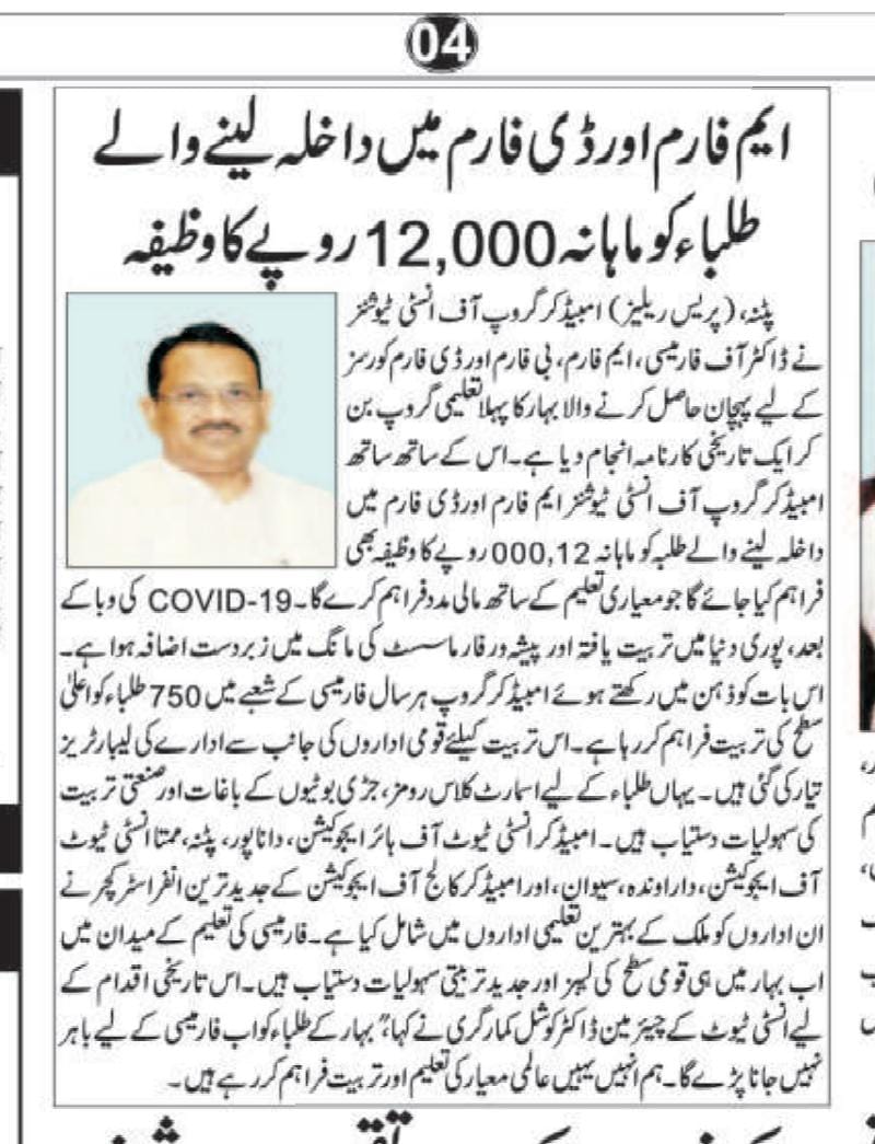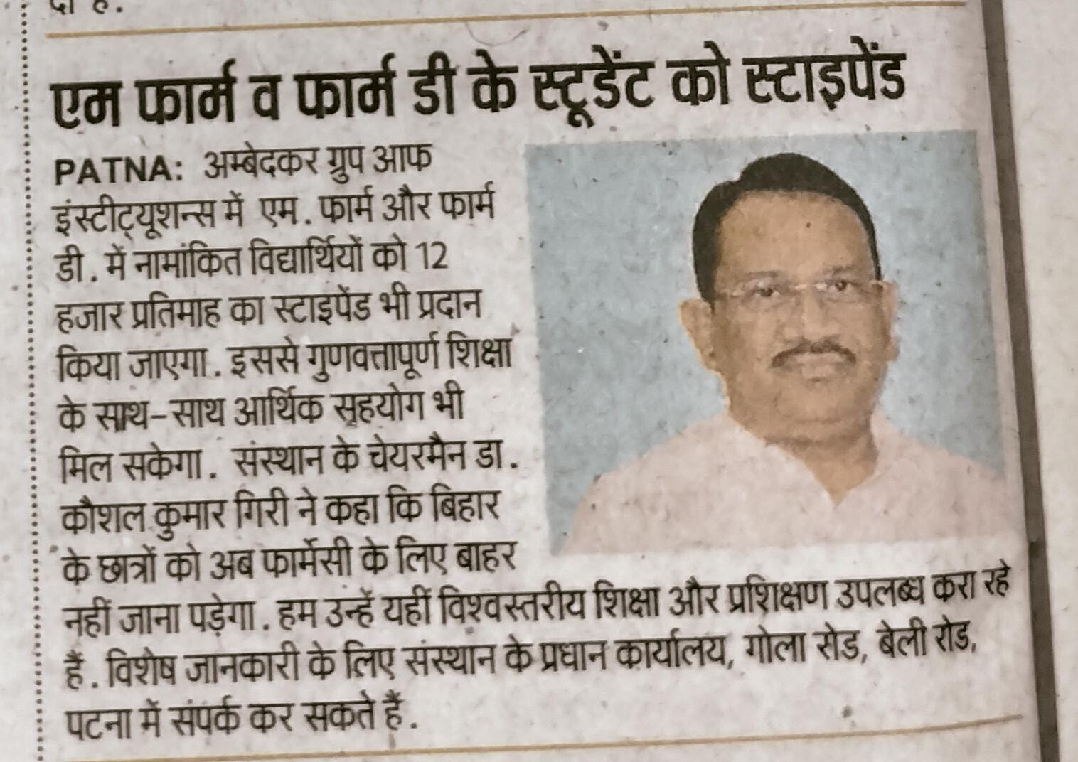 Recognized by : Deptt. of Health, Govt. of Bihar & Pharmacy Council of India, New Delhi