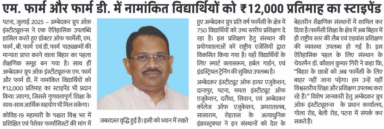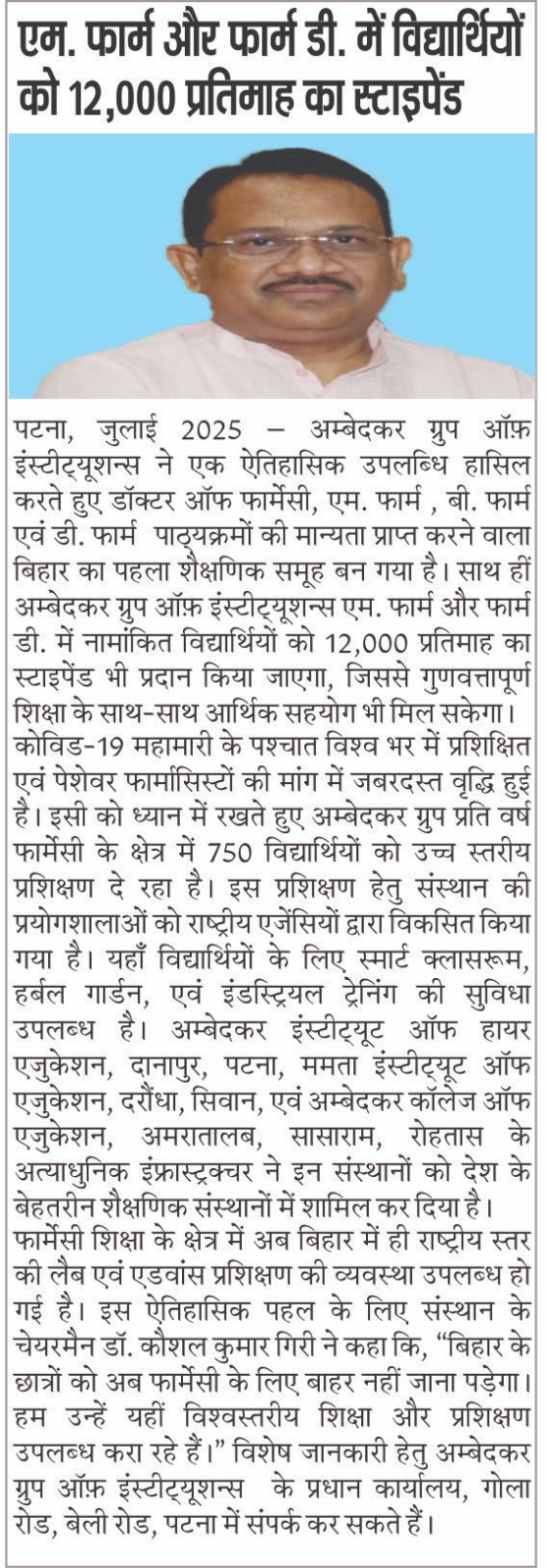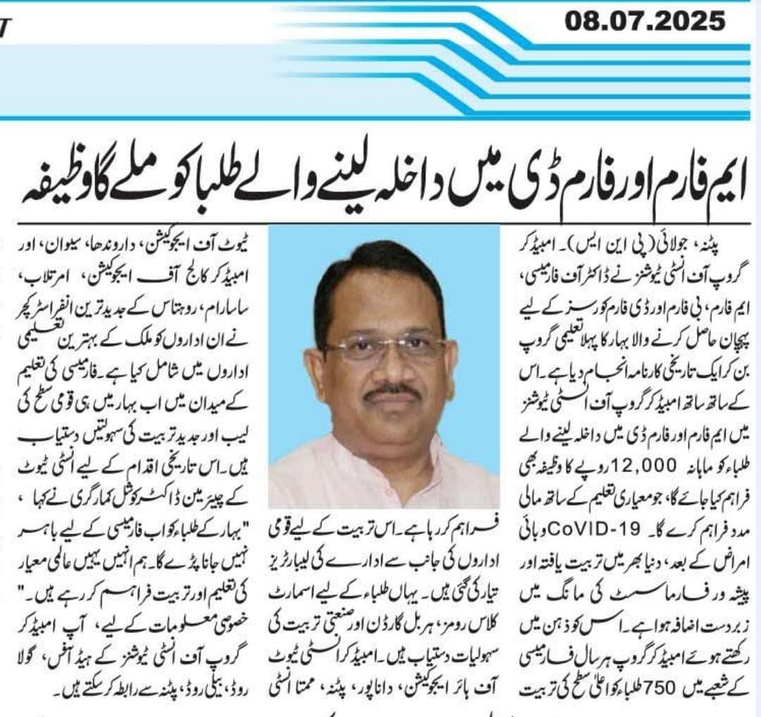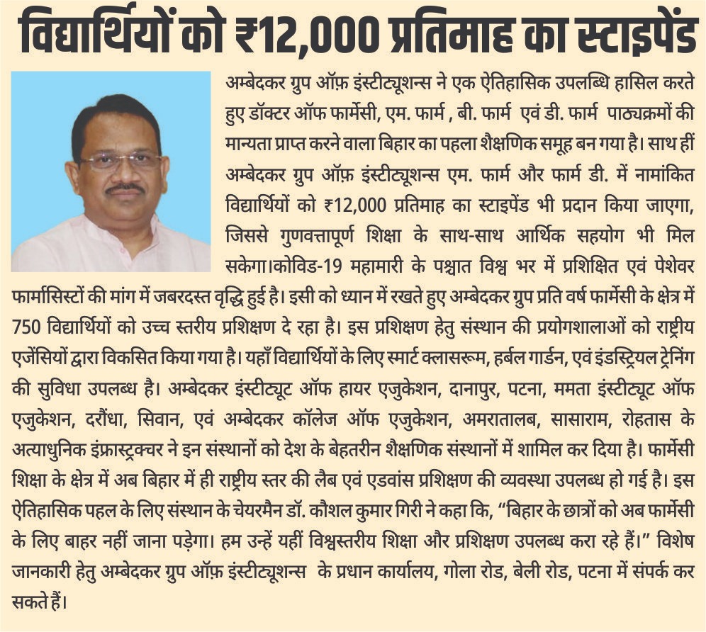 Recognized by : Deptt. of Health, Govt. of Bihar & Pharmacy Council of India, New Delhi